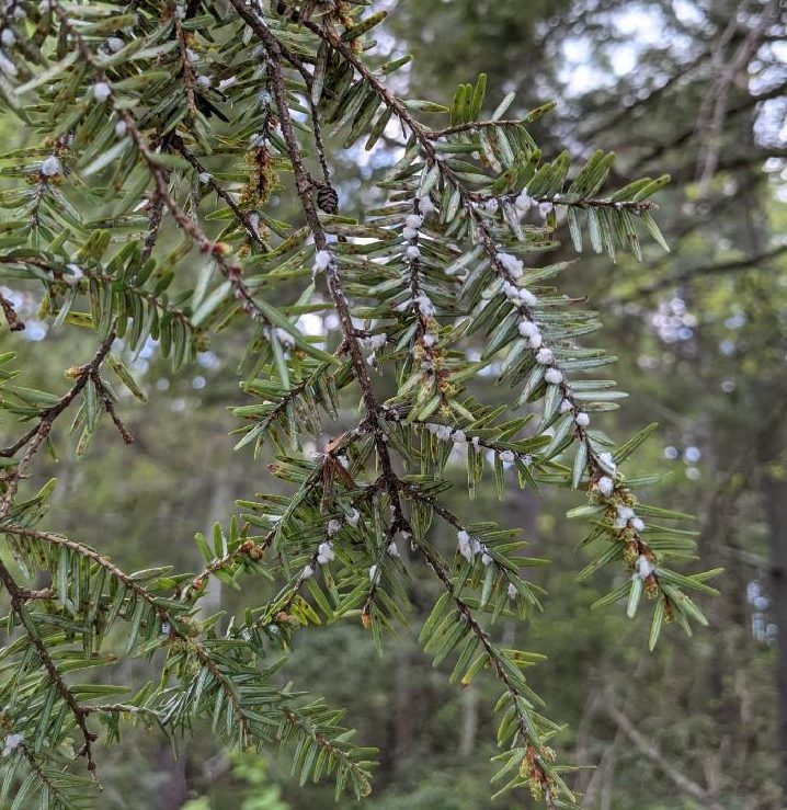 The Hemlock Woolly Adelgid (HWA, Adelges tsugae) is a small, aphid-like insects that attacks and eventually kills Eastern hemlock (Tsugae canadensis) trees.